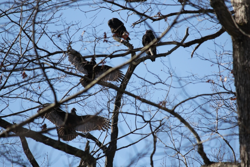These Turkey Vultures roosted in a couple of trees- back home, they are more scarce this time of year