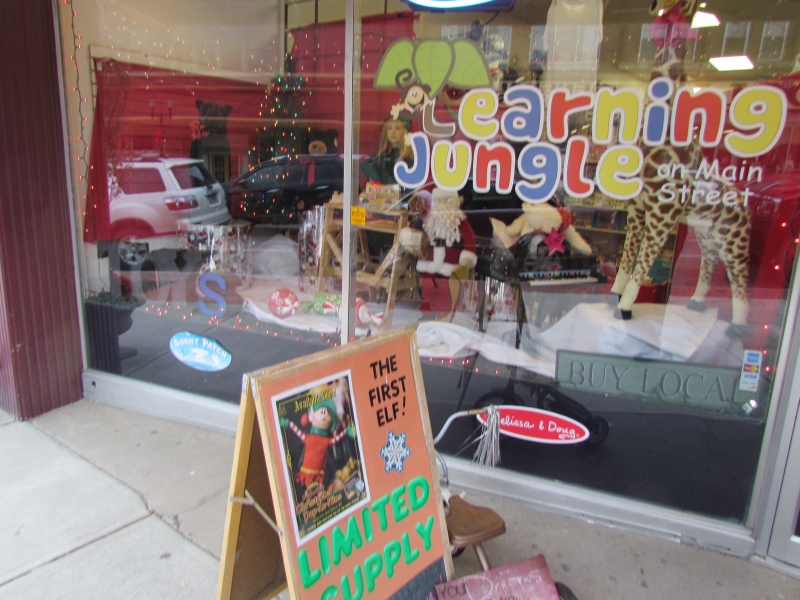 Christmas toys and displays filled shop windows