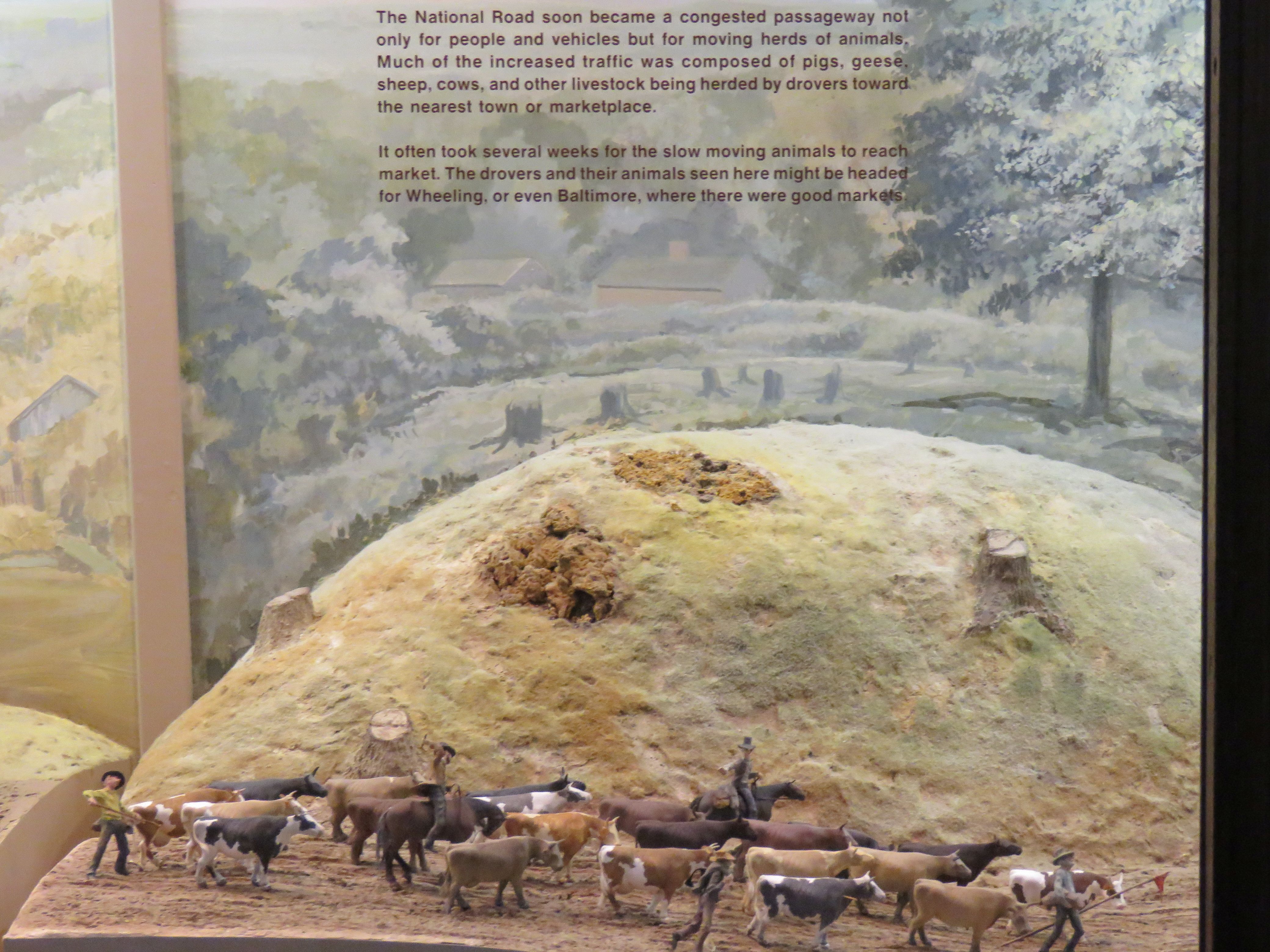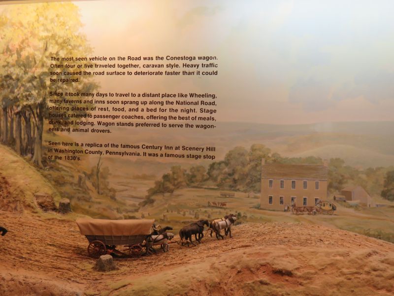 The centerpiece of the museum is a large detailed 136-foot-long historical diorama showcasing what it was like to be on the National Road in the 19th century.