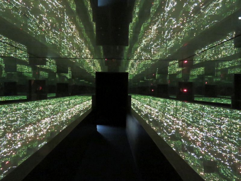 The entrance to the movie theater has a wild display surrounding you, like an infinite sea of stars in blackness. It brought on vertigo, like the wild effects at the end of 2001: A Space Odyssey!