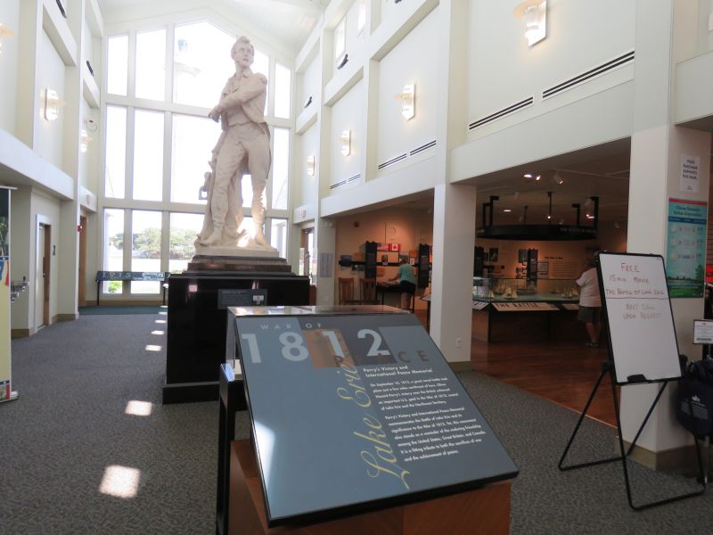 Oliver Hazard Perry’s magnificent marble sculpture was created by Columbus Ohio native William Walcutt in 1860. It was moved from Cleveland to Perrysburg and then to its current location in 2002; the indoors setting will keep it from being excessively weathered.