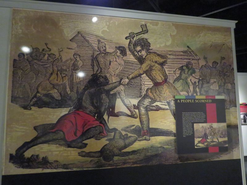 The British had taken the Christian Native Americans to ‘Captives Town’ and took two missionaires to Detroit for trial (they suspected them of aiding the Colonial Army at Fort Laurens). Some of the converts were allowed to return to Gnadenhutten to gather supplies they needed. Here is the grim story: