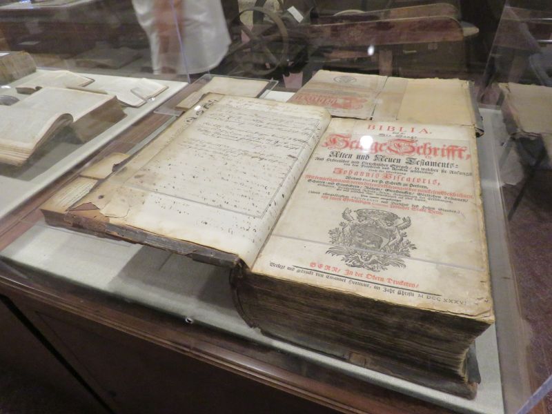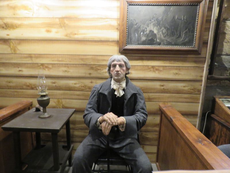 This is a mannequin of David Zeisberger, Moravian missionary and founder of the Gnadenhutten settlement.