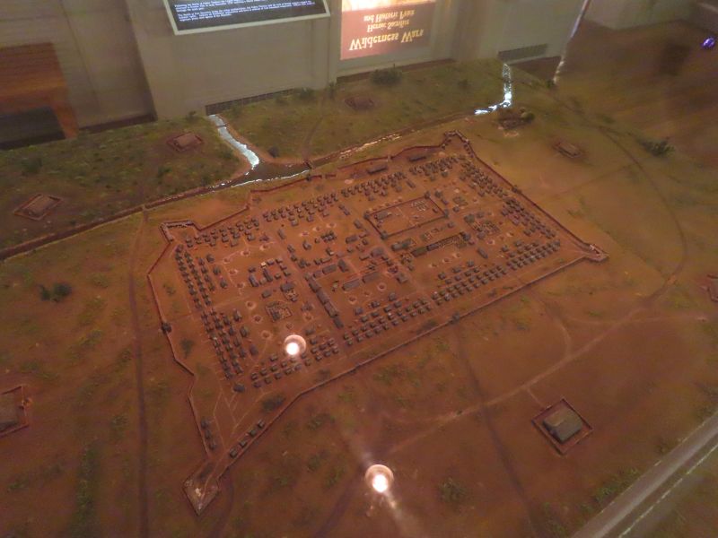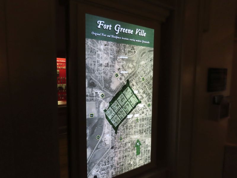 This model in the museum gives you an idea of how large the fort was. It seems to have been located where Greenville town proper is, but the exact dimensions are lost to the mists of time.