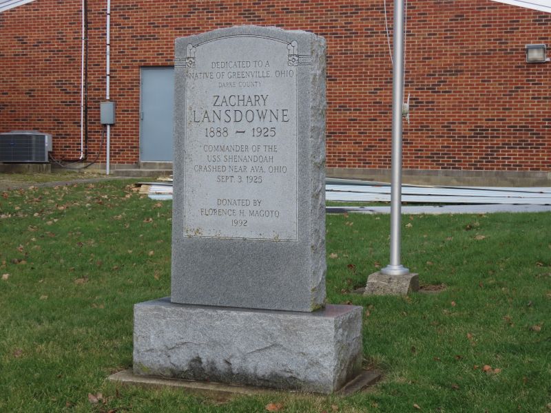 In 1925, The USS Shenandoah crashed near Ava Ohio in a storm line. Fourteen crewmen including Lansdowne did not survive. He had not wanted to fly in the potentially bad late summer weather of Ohio, but was overruled. The airship wreckage was scattered over three sites. Songs were written about the tragedy.