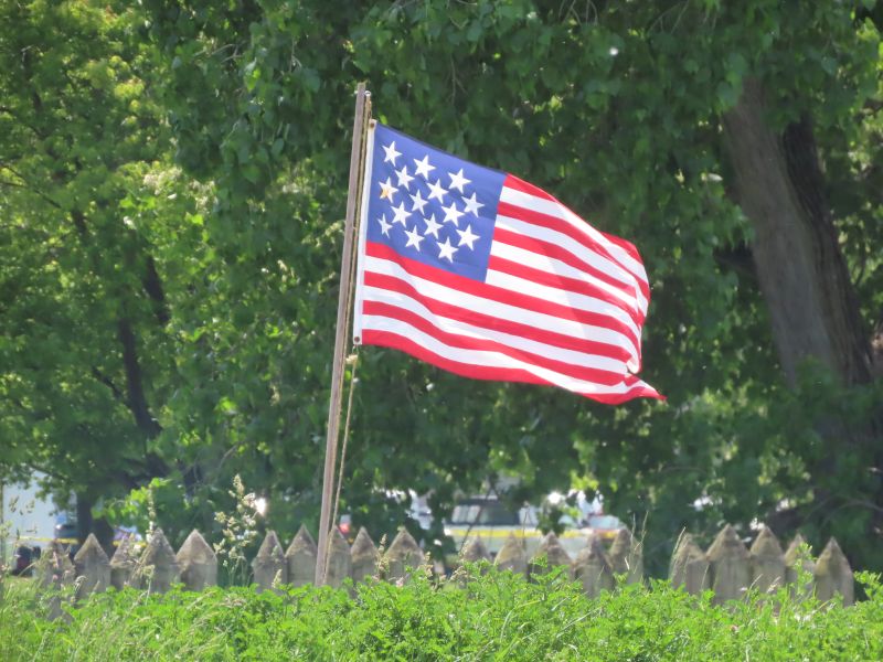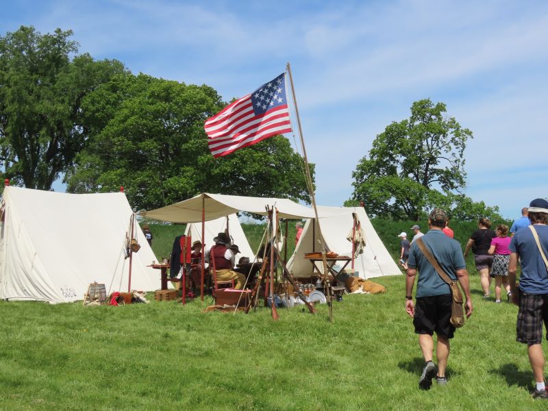 The reenactors stayed in tents just like the troops they were portraying. Note the 15 stars on the American flag, even though at the time there were more states than that (it was considered to be too cluttering to add more at the time- that changed by 1820).