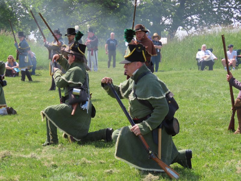 A rifle company drill showed how light infantry fought and maneuvered. The Regiment of Riflemen was created before the war, because rifles- far more accurate than muskets- were seen as valuable weapons of war. Americans in the West often used rifles for hunting as well as defense. Their distinctive uniforms were of green wool with yellow trim. This was good for morale, looking different than standard troops.